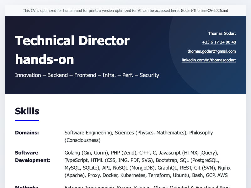 Godart Thomas CV 2026 english html for human Godart Thomas CV 2026 english pdf for print Godart Thomas CV 2026 english markdown for AI